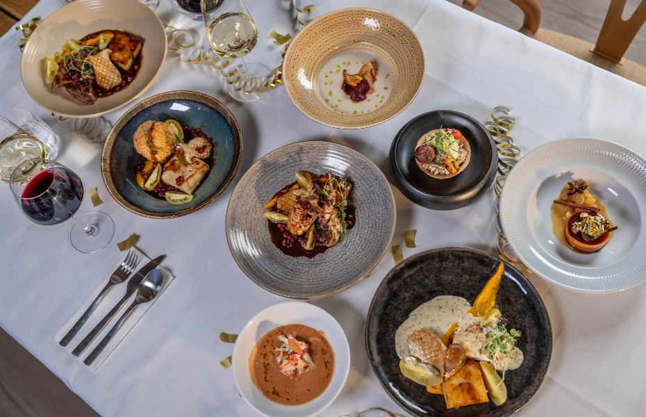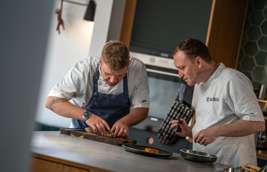 Sammen har de skabt en nytårsmenu, hvor hver detalje er tænkt igennem – fra de fyldige saucer til de sprøde elementer og smukt afstemte tilbehør. Resultatet er en middag, der bærer tydeligt præg af restauranternes håndværk, erfaring og kærlighed til god mad.